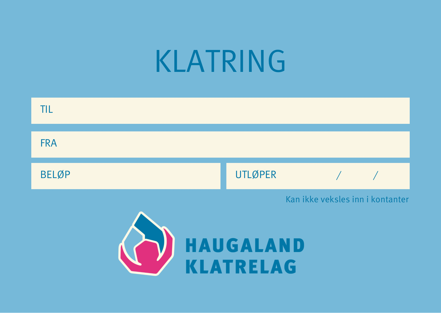Lyst å introdusere en venn til klatring? Gi noen en ny utfordring som bursdagspresang? Vi selger gavekort i hallen. Prisen vil variere avhengig av kurs eller pakker, ta kontakt for mer info.